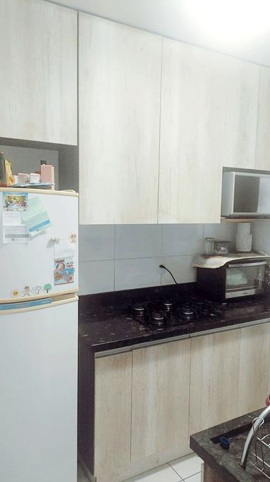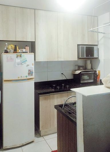 São 2 dormitórios, cozinha planejada, sala, banheiro social, 1 andar-PRÉDIO SEM ELEVADOR, garagem para 1 carro, portaria 24hs, salão de festa, espaço kids, playground, churrasqueira.